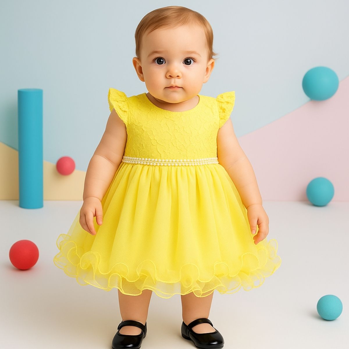 Deixe sua pequena brilhar com este lindo vestido infantil de festa amarelo, perfeito para ocasiões especiais como aniversário, festas, casamentos ou ensaios fotográficos.